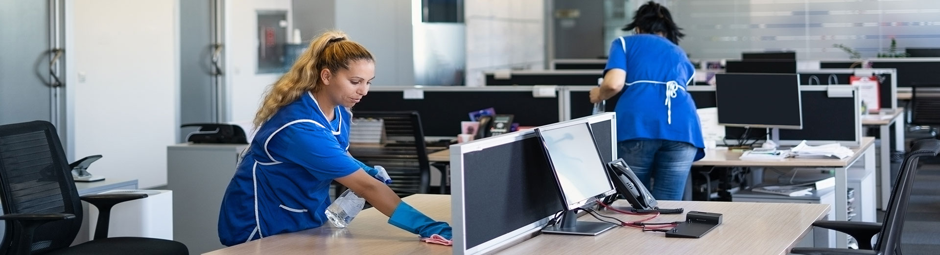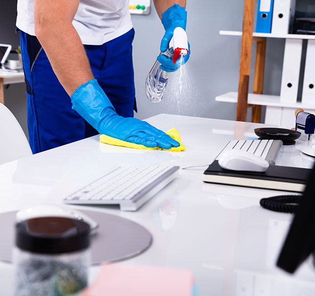 Tägliche oder zyklische Unterhaltsreinigung der Tische, Monitore, Tastaturen und der freien Büroflächen. Wir kümmern uns um die Entleerung von Mülleimern und die Bestückung mit Verbrauchsmaterialien.