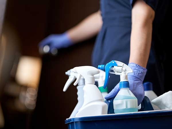 Reinigung und Desinfektion aller Oberflächen, Fußböden und der Außenflächen medizinischer Geräte, strikt nach Hygieneplan.